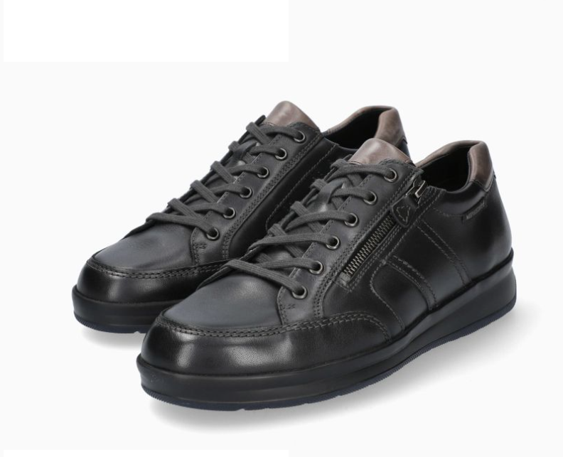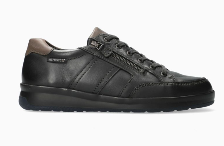 Modèle LISANDRO W. de la marque MEPHISTO : Ce sneaker s'adapte à toutes les situations en offrant une sensation de confort et de légèreté. Sa doublure en cuir procure un climat sain à l'intérieur de la chaussure. Ce modèle noir et gris pour homme est composé de cuir lisse sur l'ensemble du pied.