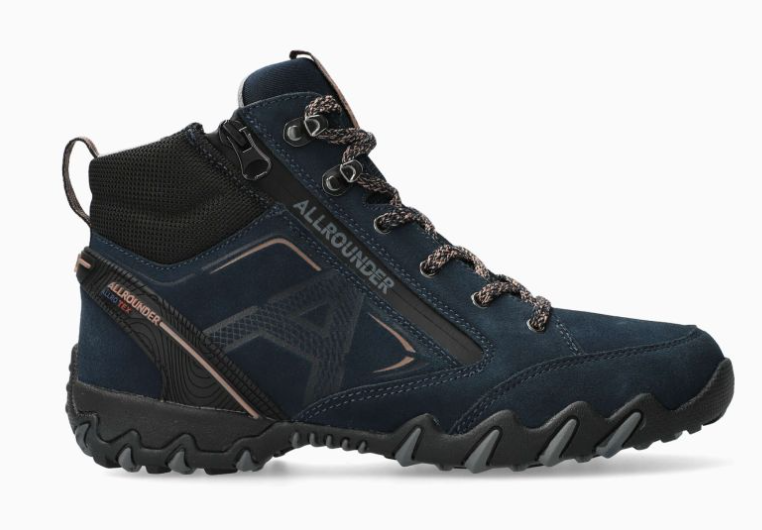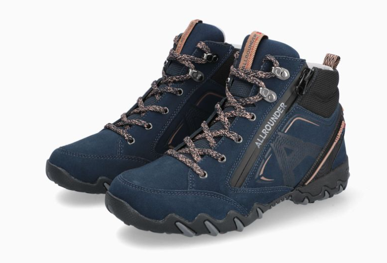 Modèle NORIKA-TEX de la marque ALLROUNDER: Chaussure d'extérieur mi-haute avec les meilleures propriétés en matière d'adhérence, d'amortissement et de stabilité. Le profil spécial GRIP PROFILE, antidérapante, garantit une aisance parfaite sur tous les terrains. Cette bottine pour femme dans un beau bleu se distingue surtout par son design pratique et la qualité de la matière en velours.