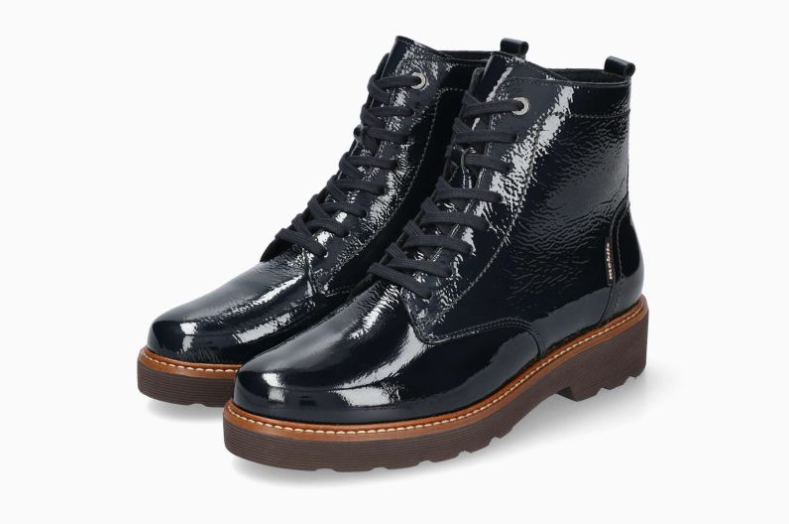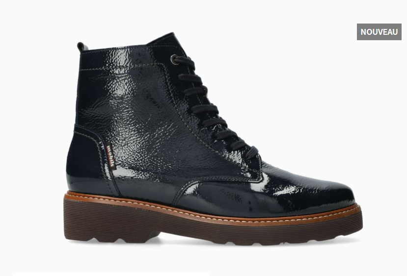 Modèle ODALIA N de la marque MOBILS : Moderne et confortable, cette bottine s'accordera à toutes vos envies. Par temps froid, la doublure douce et chaude assure le confort thermique du pied. Cette bottine bleue pour femme est composée de cuir vernis froissé.