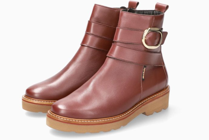 Modèle OLLIA de la marque MOBILS : Cette bottine au style classique s'apparente à la chaussure idéale pour les temps d'automne et d'hiver. La doublure en cuir procure un climat sain à l'intérieur de la chaussure. Cette bottine marron pour femme est composée de cuir lisse.